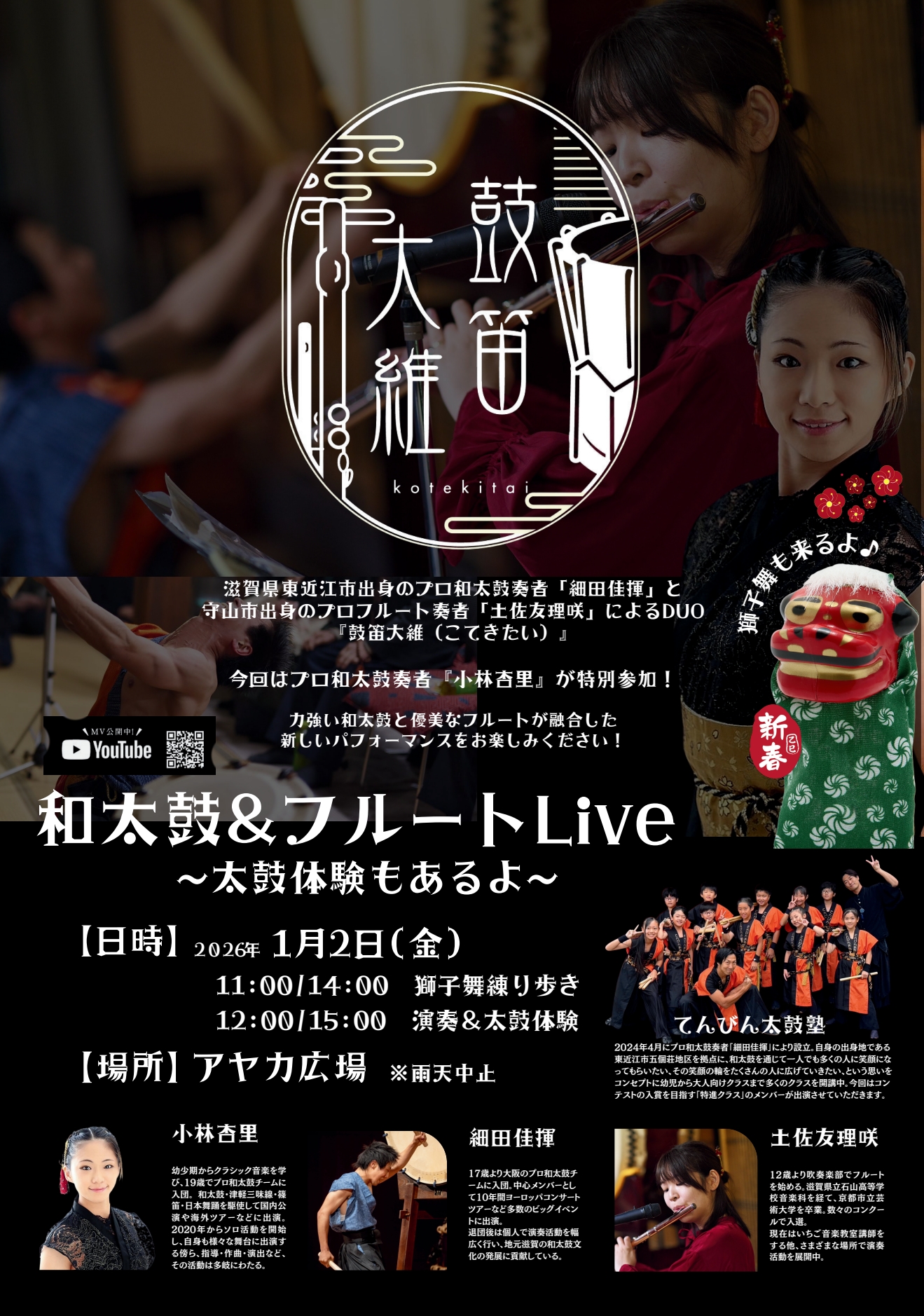 力強い和太鼓と優美なフルートが融合したパフォーマンスをお楽しみください♬