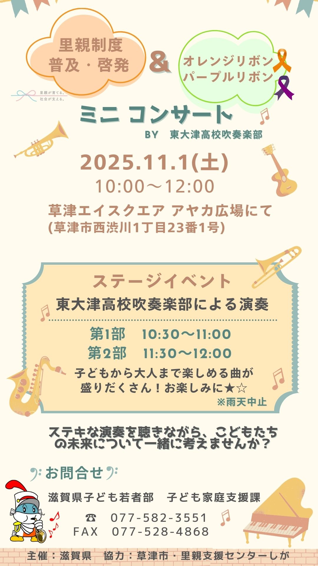 11月の「オレンジリボン・児童虐待防止推進キャンペーン」において、東大津高校の生徒さんと一緒に児童虐待の防止および里親制度の普及に関する合同啓発活動イベントを実施します♪ 児童虐待や社会的養護の担い手である里親についての理解を深めるましょう!