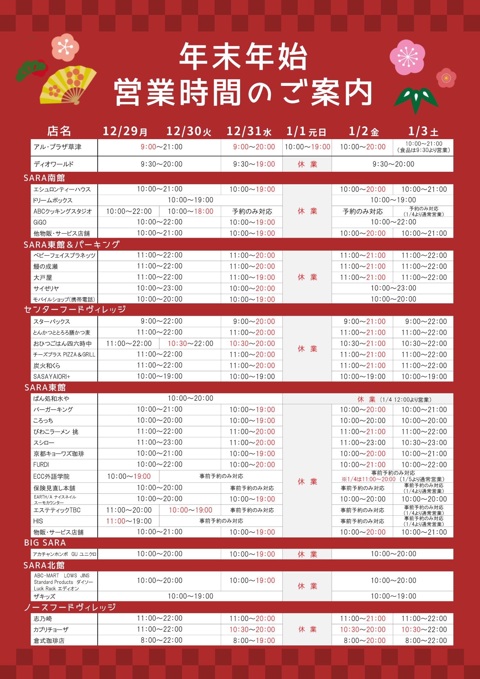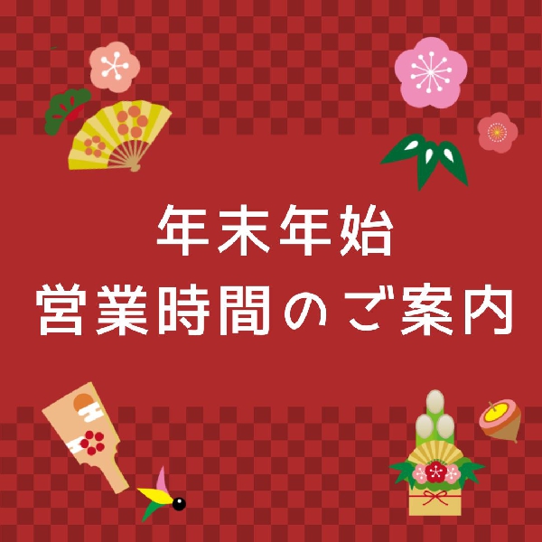 年末年始は各店舗の営業時間が通常と異なります。 下記をご確認ください。 (クリックすると大きく表示されます。) ※詳細は各店まで直接お問い合わせいただきますよう よろしくお願いいたします。