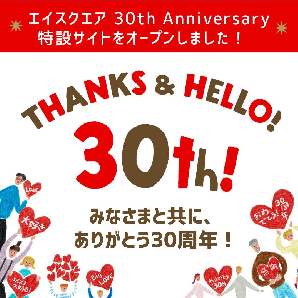 エイスクエアは、いつも支えてくださる皆さまのおかげで30周年を迎えます♪