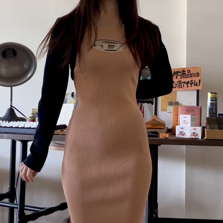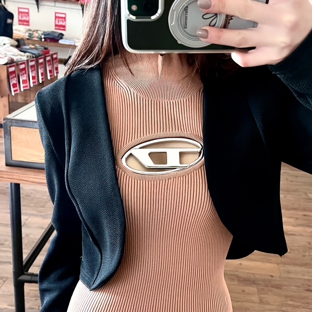 DIESEL M-Onerva オーバルDのメタルプラークロゴが魅力の ノースリーブミニドレスが入荷! スリムフィットのシルエットとリブならではの 伸縮性でボディラインがすっきり引き立つ 華奢な1枚です◎ 1点のみの入荷です! 是非、店舗にてご覧ください♪