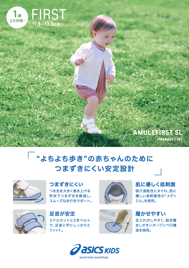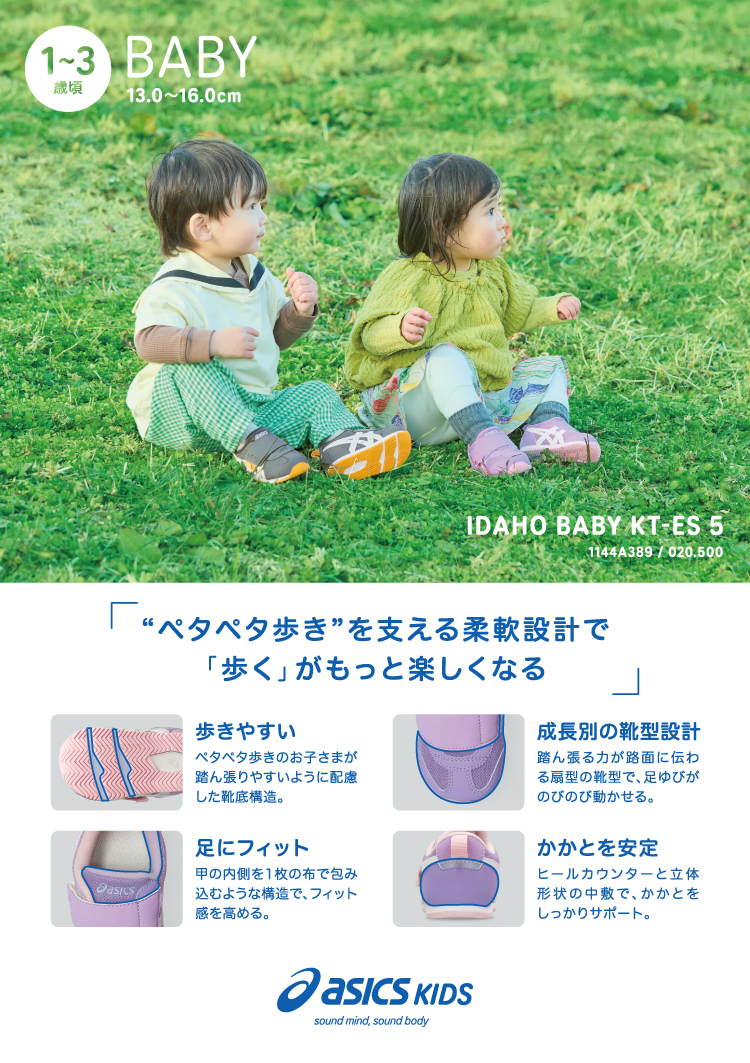 「子どもの健やかな成長を足元から応援する」を コンセプトにしたキッズシューズ ①12-135 AMULEFIRST SL ②13-155 IDAHO BABY KT-ES 5 ③16-18 IDAHO MINI 4