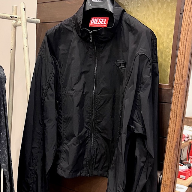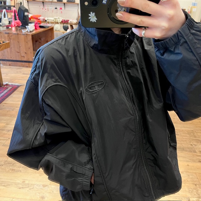 DIESELから新作のレディースジャケットが入荷! ナイロン製の生地とドロップショルダーの ルーズフィットで着心地も抜群◎ ドローストリングが付いており、軽く絞って フォルムに変化をつけることも可能! 1点のみの入荷です! 是非、店舗にてご覧ください♪